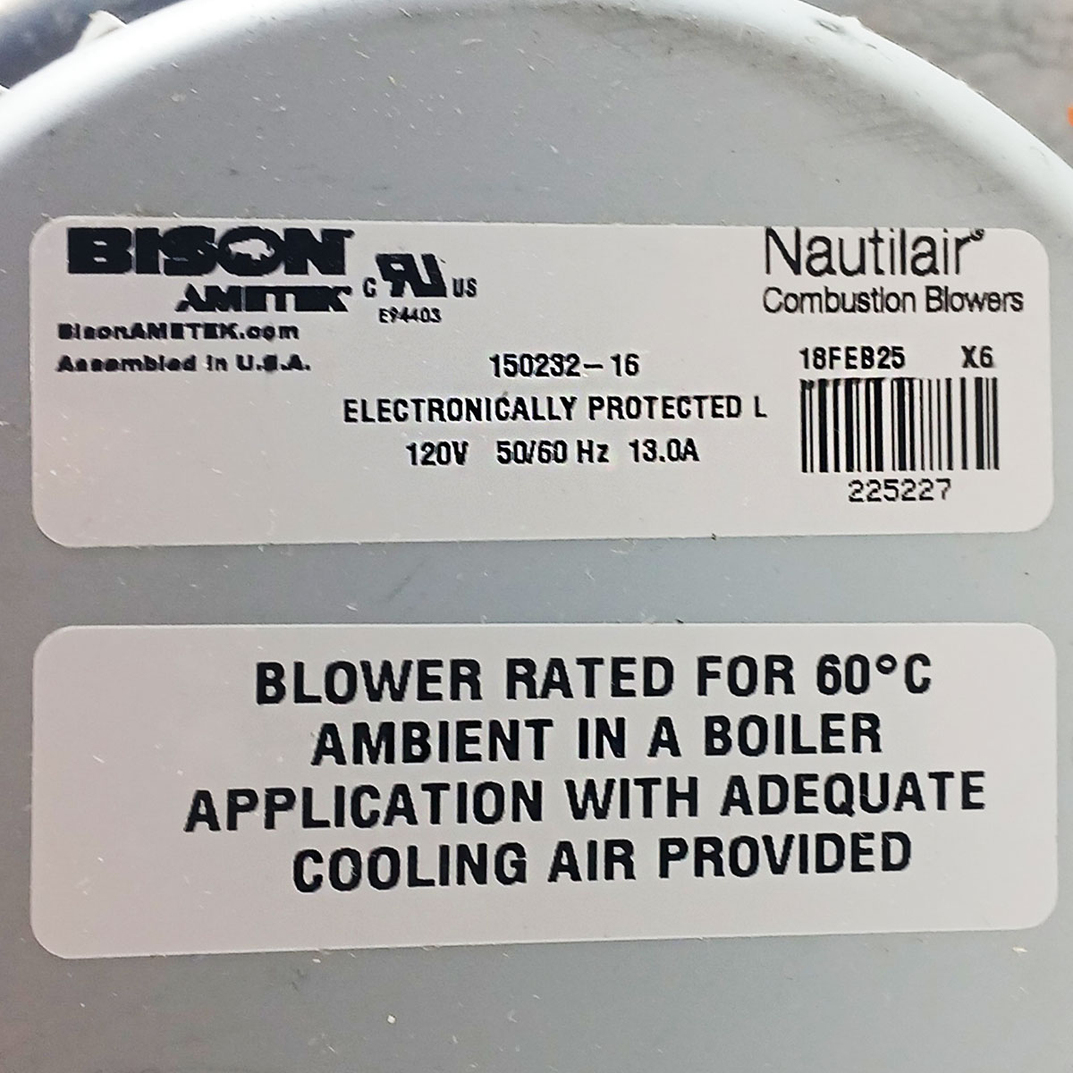 014556F Raypak Heater Metek 150232-16 Combustion Air Blower Assembly 503A-1505A 120V 50/60Hz 13A