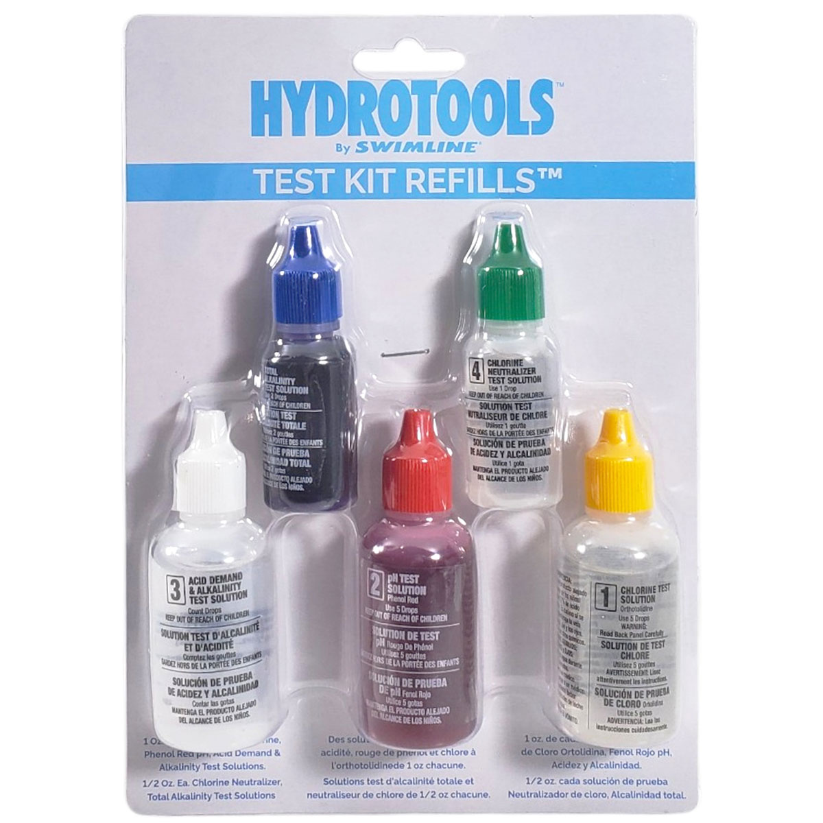 The HydroTools 8455 Refill Kit includes five key test solutions: