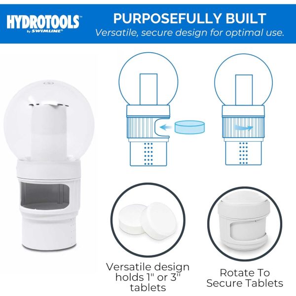 - Compatible with both chlorine tablets and bromine tablets.