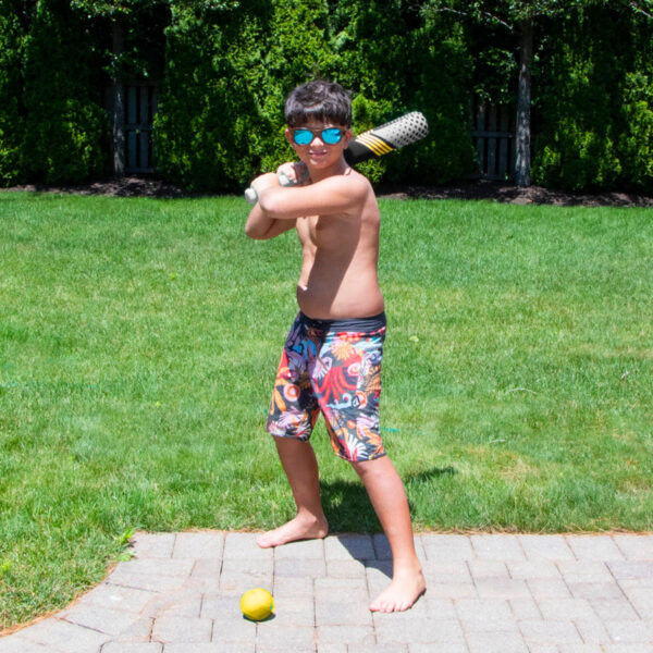- Toss the neoprene ball and swing the lightweight bat to hit it – make a splash and score a home run!
