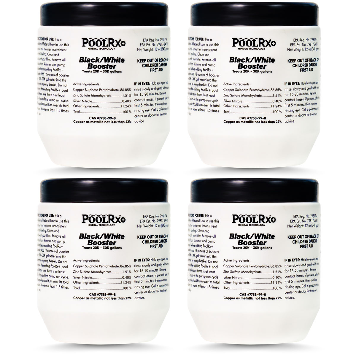PoolRx+ PoolRx Plus Black White Booster Unit With Silver For 20K-30K Gallon Swimming Pools – Pack of 4 Units